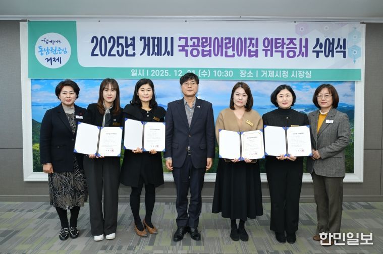 한민일보 서울포커스 김은금 기자 | 거제시는 12월 31일, 시장실에서 국공립어린이집 수탁자로 선정된 어린이집에 위탁계약증서를 수여했다.