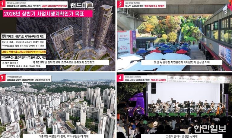 이에 따르면 홍제역 역세권 활성화 사업은 정비구역 지정과 정비계획 결정, 사업시행자 지정까지 1년 9개월여 만에 완료해 초고속으로 본궤도에 진입했고, 성산로 입체복합개발 사업과 경의선 지하화 사업은 각각 서울시 신성장거점 사업, 서울시 선도사업으로 선정돼 추진에 날개를 달았다.