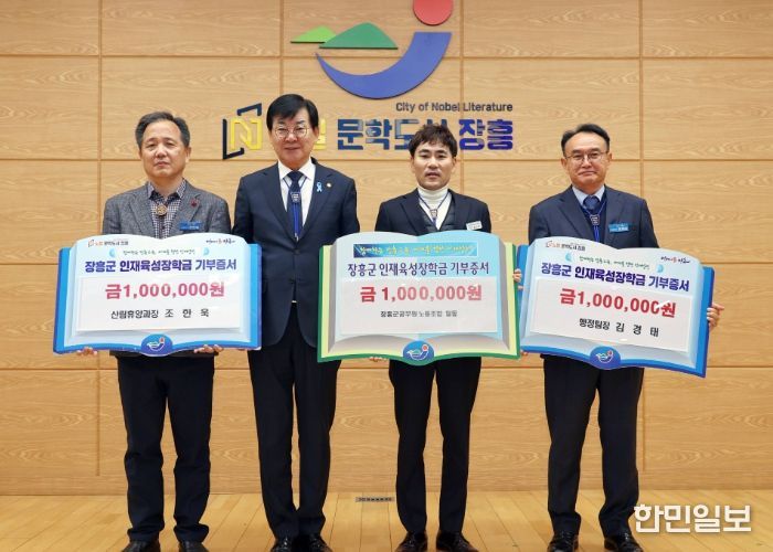 장흥군 관계자는 “연말을 맞아 지역사회 각계각층에서 인재 육성을 위한 따뜻한 나눔이 이어지고 있다”며 “기탁해주신 소중한 장학금은 지역 학생들의 성장과 미래를 위한 밑거름으로 책임 있게 사용하겠다”고 밝혔다.