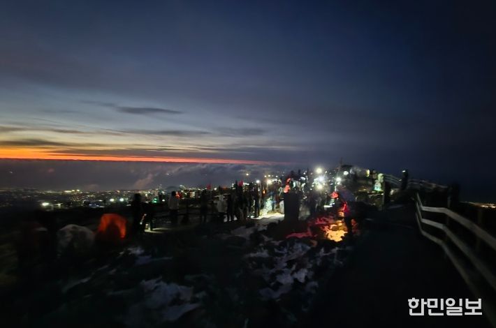 한라산도 새해를 맞는 발걸음으로 북적였다. 2026년 새해맞이를 위한 한라산 야간산행에는 정상 탐방 예약자 1,500명을 포함해 2,650여 명이 참여했다.