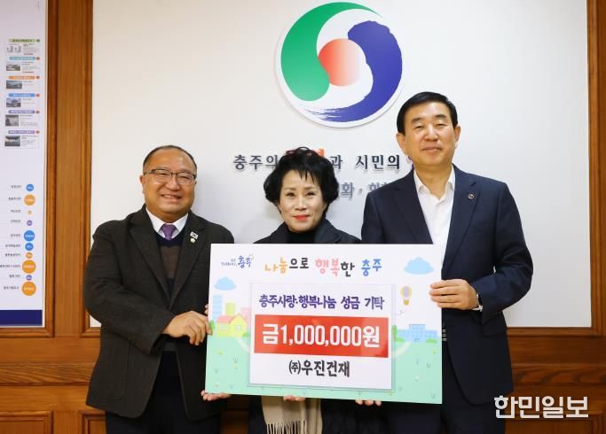 한민일보 서울포커스 김다남 기자 | 충주시는 지역기업 우진건재가 시청을 방문해 어려운 이웃을 위한 ‘충주사랑행복나눔’ 기금 100만 원을 기탁했다고 2일 밝혔다.
