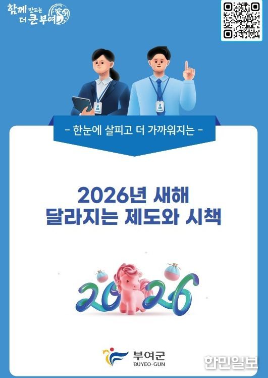 한민일보 서울포커스 유돈상 기자 | 부여군은 ‘2026년 달라지는 제도·시책’을 군 누리집에 게시했다고 2일 밝혔다.