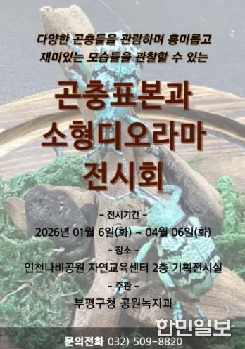 한민일보 서울포커스 김성혜 기자 | 부평구는 인천나비공원에서 오는 6일부터 4월 6일까지 ‘곤충표본과 소형디오라마 전시회’를 개최한다고 밝혔다.