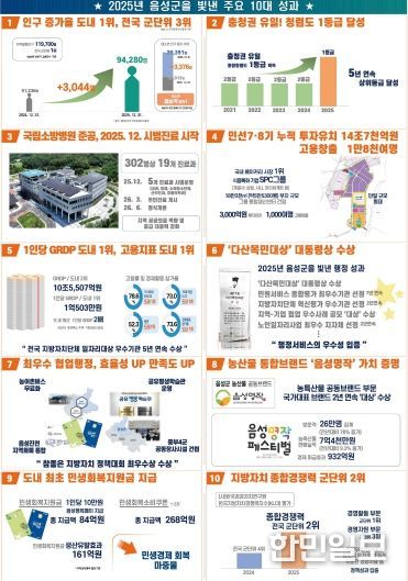 한민일보 서울포커스 김다남 기자 | 음성군이 2025년 군민과 함께 이루어낸 10대 주요 성과를 5일 발표했다.