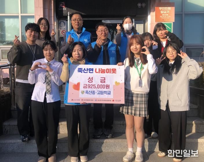 한민일보 서울포커스 임경복 기자 | 죽산중·고등학교는 지난 2일 2025학년도 동아리박람회 수익금 전액인 925,000원을 죽산면 저소득층을 위해 죽산면지역사회보장협의체에 기탁했다.