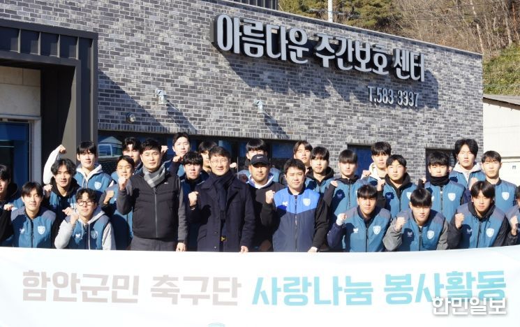 한민일보 서울포커스 김서윤 기자 | 함안군은 지난 3일 함안군민축구단(단장 전창옥)이 2026시즌 첫 공식 일정으로 가야읍에 있는 ‘아름다운 동산 주간보호센터’에서 사랑 나눔 봉사활동을 진행했다고 밝혔다.