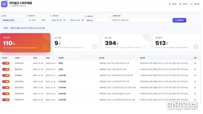 한민일보 서울포커스 박정민 기자 | 서울 강동구는 인공지능(AI) 모델을 활용한 ‘바이브 코딩(Vibe Coding)’ 기법으로 자치법규와 상위법령을 실시간 자동 매칭하는 ‘강동 자치법규 스마트 매칭’ 시스템을 자체 개발해 올해 1월부터 운영한다고 6일 밝혔다.