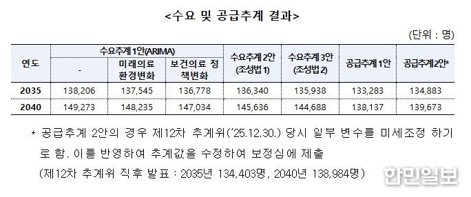 한편, 이날 보정심에 보고된 수급추계 결과는 다음과 같다.