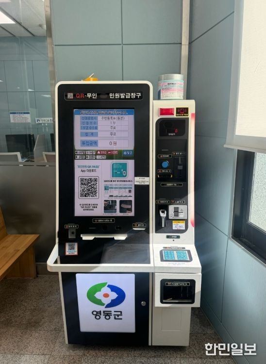 한민일보 서울포커스 김다남 기자 | 충북 영동군이 무인민원발급기 수수료 전면 무료화를 시행하며, 군민 중심의 민원서비스 개선에 나섰다.