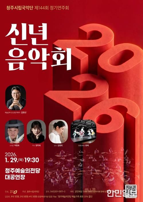 한민일보 서울포커스 김다남 기자 | 청주시립국악단은 오는 1월 29일 오후 7시 30분 청주예술의전당 대공연장에서 제144회 정기연주회 ‘2026 신년음악회’를 개최한다고 밝혔다.