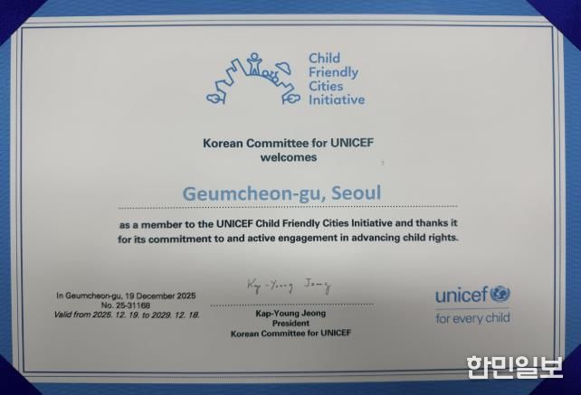 한민일보 서울포커스 곽중희 기자 | 금천구는 유니세프 한국위원회로부터 아동친화도시 재인증을 획득했다고 7일 밝혔다.