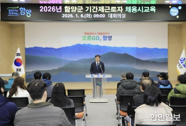 한민일보 서울포커스 김서윤 기자 | 함양군은 1월 6일 군청 대회의실에서 신규 채용된 기간제 근로자 110명을 대상으로 '산업안전보건법'에 따른 산업안전·보건 교육을 진행했다.