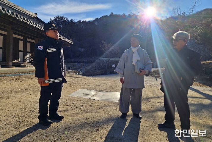 한민일보 서울포커스 최성훈 기자 | 김천소방서(서장 송영환)는 2025년 경북지역에서 발생한 초대형 산불을 계기로 겨울철 화재 위험에 대한 경각심이 높아진 가운데, 6일 증산면에 위치한 ‘문화재소장 수도암’을 방문해 화재 예방을 위한 안전관리 실태를 점검했다고 밝혔다.