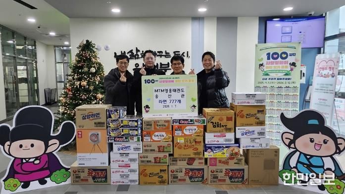 한민일보 서울포커스 심기옥 기자 | 의정부시 송산3동행정복지센터는 1월 7일 MTM영웅태권도 송산관이 ‘100일간 사랑릴레이 배턴 잇기’에 동참해 라면 777개를 기부했다고 밝혔다.