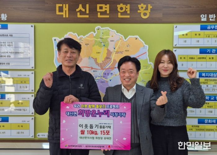 송태연 위원장은 “기부를 권하면서 스스로 실천하지 못한 것 같아 마음에 걸렸다. 작은 정성이지만 이웃들에게 도움이 되길 바라고 앞으로도 대신면 지역사회보장협의체 활성화와 복지사각지대 없는 대신면을 만들기 위해 최선을 다하겠다.”고 말했다.