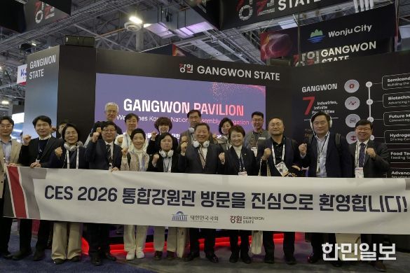한민일보 서울포커스 곽중희 기자 | 세계 최대 IT·가전 전시회인 ‘CES 2026’이 열리고 있는 미국 라스베이거스에서 국회 방문단이 통합강원관을 찾아, 강원 기업들의 혁신 기술이 국회 관계자들의 주목을 받았다.