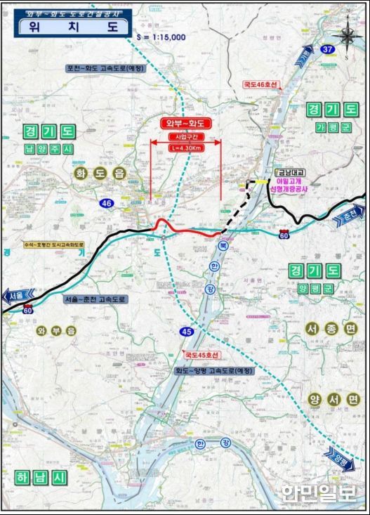 한민일보 서울포커스 김윤이 기자 | 국가지원지방도 86호선 와부~화도 4.3㎞ 구간이 5년 8개월 동안의 공사를 마치고 13일 전격 개통된다.