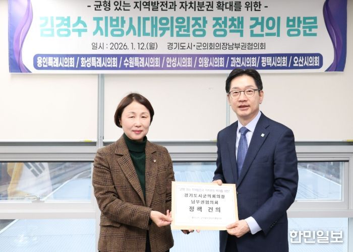 한민일보 서울포커스 김성윤 기자 | 경기도시·군의회의장남부권협의회는 12일 세종특별자치시 지방시대위원회 대회의실에서 김경수 지방시대위원회 위원장과 면담을 갖고, 지방의회 인사권 독립 이후에도 조직‧예산 편성권과 자체 조사‧감사 권한이 여전히 집행부에 구조적으로 종속돼 있는 현실을 공유하며, 이러한 제도적 한계에 따른 입법 미비를 보완하기 위한 정책 개선 방안을 공식 건의했다.