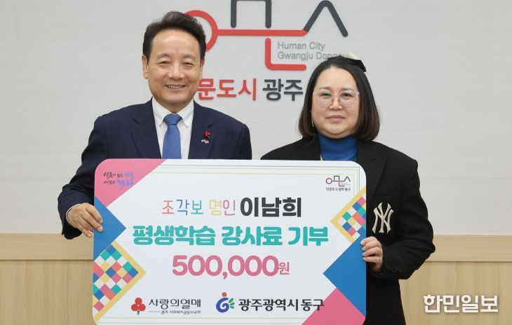 한민일보 서울포커스 임경복 기자 | 광주 동구는 평생학습관에서 조각보 포장 강사로 활동한 이남희 씨가 강사료 일부를 기부하며 지역사회에 따뜻한 나눔을 전했다고 밝혔다.