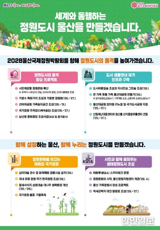한민일보 서울포커스 임경복 기자 | 울산시가 2026년 한 해 동안 정원도시의 품격을 높이고 시민과 함께 성장하고 누리는 ‘세계와 동행하는 정원도시 울산’ 만들기에 총력을 기울인다.