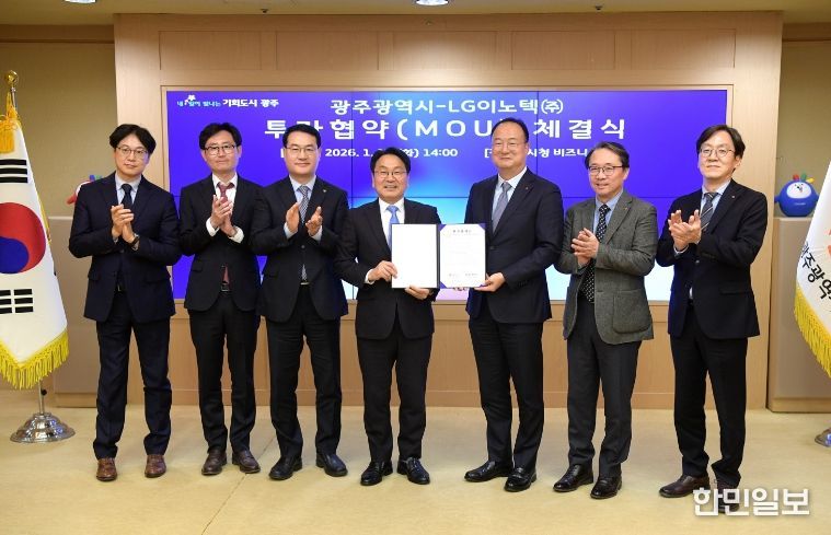 한민일보 서울포커스 임경복 기자 | 광주광역시와 LG이노텍은 13일 시청 비즈니스룸에서 ‘차량용 제어모듈 신규 생산라인 구축을 위한 투자협약’을 체결했다. 이번 협약은 2026년 새해 부강한 광주로의 힘찬 도약을 알리는 첫 신호탄이다.