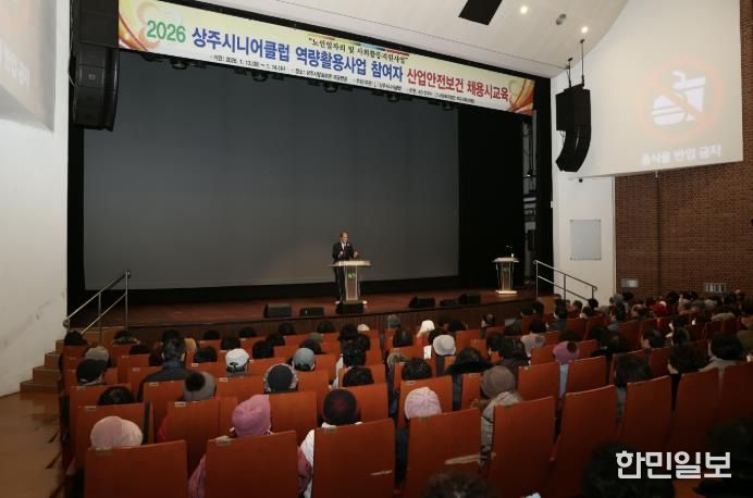 한민일보 서울포커스 김봉순 기자 | 상주시니어클럽은 2026년 노인일자리 및 사회활동지원사업‘노인역량활용사업단’참여자를 대상으로 1월 13일부터 14일까지 이틀간 상주문화회관에서 산업안전보건교육을 실시했다.