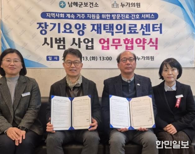 한민일보 서울포커스 김서윤 기자 | 남해군보건소는 13일 누가의원과 ‘장기요양 재택의료 시범사업’ 추진을 위한 업무 협약(MOU)을 체결했다.