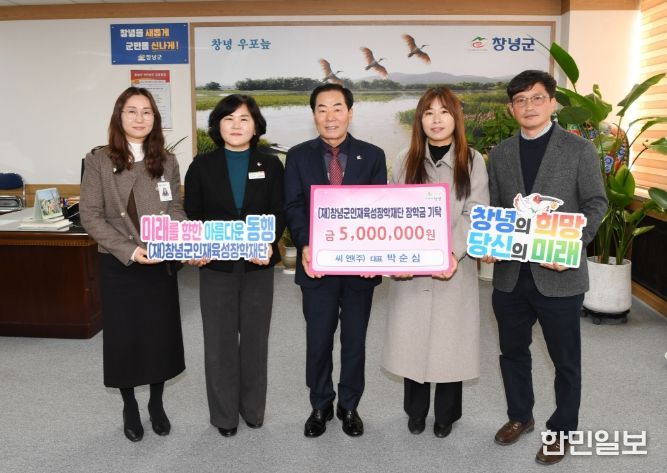 한민일보 서울포커스 김은금 기자 | 창녕군은 지난 13일 씨엔(주) 박순심 대표가 지역 인재 육성을 위한 장학금 500만 원을 (재)창녕군인재육성장학재단(이사장 성낙인 창녕군수)에 기탁했다고 밝혔다.