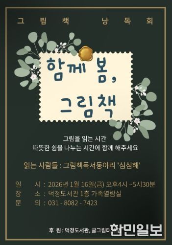 한민일보 서울포커스 임경복 기자 | 양주시 덕정도서관은 오는 1월 16일 16시부터 17시 30분까지, 도서관 1층 가족열람실에서 그림책 낭독회 '함께 봄, 그림책'을 운영한다.