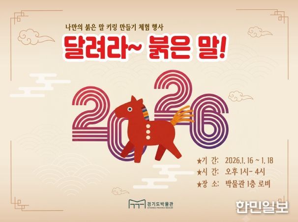 한민일보 서울포커스 김윤이 기자 | 경기문화재단 경기도박물관(관장직무대행 박본수)은 병오년 새해를 맞아 관람객을 위한 체험형 교육행사 〈달려라~ 붉은 말!〉을 1월 16일부터 18일까지 3일간 박물관 로비에서 운영한다.