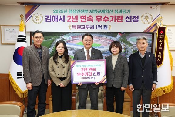 한민일보 서울포커스 김은금 기자 | 김해시는 행정안전부 주관 ‘2025년 지방규제혁신 추진 성과평가’에서 2024년에 이어 2년 연속 우수기관으로 선정돼 특별교부세 1억 원을 확보했다고 15일 밝혔다.