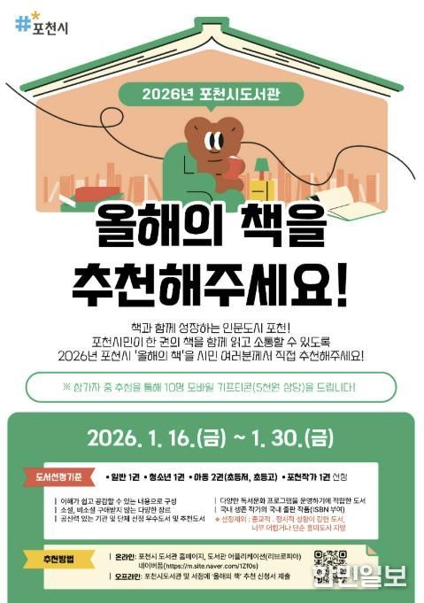 한민일보 서울포커스 심기옥 기자 | 포천시는 ‘2026년 포천시 올해의 책’ 선정을 위해 오는 16일부터 30일까지 시민 투표를 진행한다.