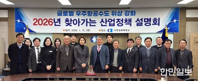 한민일보 서울포커스 임철현 기자 | 경상남도는 15일 사천상공회의소에서 ‘2026년 찾아가는 산업정책 설명회’를 열고, 우주항공 분야 산업정책을 공유하는 한편 기업 현장의 애로사항을 청취했다고 밝혔다.