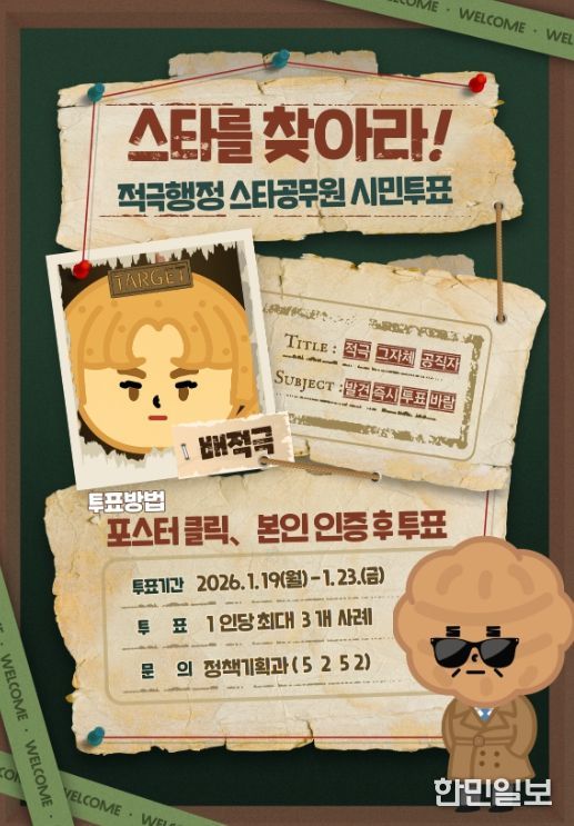 한민일보 서울포커스 황준형 기자 | 천안시는 시민이 체감하는 우수 행정 사례를 발굴하기 위해 ‘2025년 하반기 적극행정 스타공무원’ 선발 온라인 시민투표를 진행한다고 16일 밝혔다.