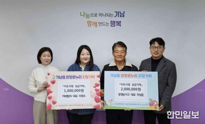 한민일보 서울포커스 전희주 기자 | 여주시 가남읍 행정복지센터은 지난 15일, 관내 사업체인 동명농기구와 카페 발리에서 지역 내 취약계층을 위한 이웃돕기 성금을 기탁했다고 밝혔다.