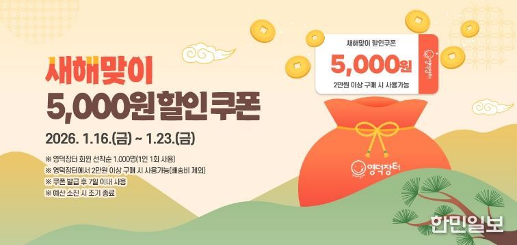 한민일보 서울포커스 임경복 기자 | 영덕군은 지역 특산물의 우수성을 알리고 소비를 촉진하기 위해 온라인 쇼핑몰 ‘영덕장터’ 이용 고객을 대상으로 새해맞이 할인 이벤트를 진행한다.