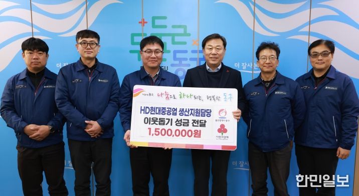 한민일보 서울포커스 기자 | HD현대중공업 생산지원담당(부서장 박필용 수석)은 1월 16일 오전 10시 동구청을 방문해 이웃돕기 성금 150만 원을 전달했다.
