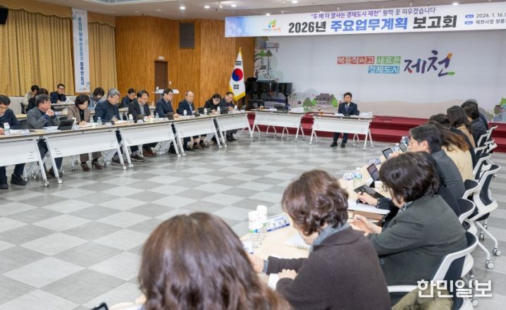 한민일보 서울포커스 김다남 기자 | 제천시는 지난 16일 시청 청풍호실에서 전 부서가 참여하는 ‘2026년 주요업무계획 보고회’를 개최하고, 새해 시정 운영 방향과 핵심사업 전반을 점검했다.