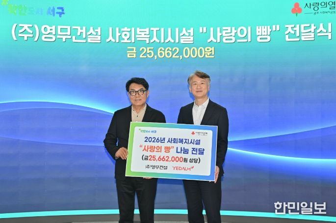 김이강 서구청장은 “정기적인 후원을 통해 따뜻한 나눔을 실천해 주신 ㈜영무건설에 깊이 감사드린다”며 “민관이 함께하는 이러한 나눔이 지역 복지안전망을 더욱 촘촘하고 단단하게 만드는 큰 힘이 될 것이다”고 전했다.