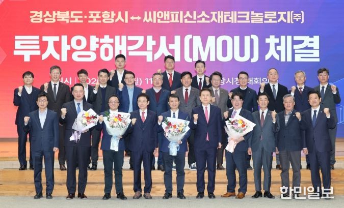 한민일보 서울포커스 임철현 기자 | 포항시와 경상북도는 19일 포항시청 대회의실에서 씨앤피신소재테크놀로지㈜와 5,000억 원 규모의 투자양해각서(MOU)를 체결했다.