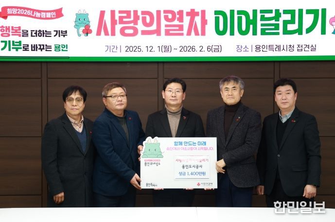 한민일보 서울포커스 김성윤 기자 | 용인도시공사는 19일 ‘노사합동 사랑의열차 이어달리기’ 성금 1,400만원을 용인특례시에 기탁했다.
