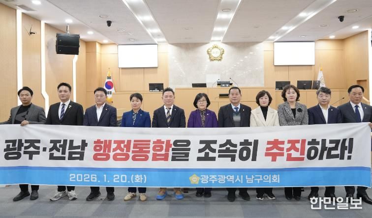이에, 남구의회 의원들은 ▲광주광역시와 전라남도가 상호 신뢰와 협력을 바탕으로 행정통합을 중단 없이 추진할 것 ▲정부와 국회가 통합 지방정부로서 실질적인 자치권 확대를 보장하는'광주·전남 통합 특별법'을 조속히 제정할 것을 촉구했다.