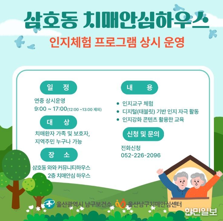 한민일보 서울포커스 기자 | 울산남구보건소는 지역 주민의 치매 예방과 인지능력 강화를 위해 삼호동 치매안심하우스 내 인지체험 프로그램을 확대 운영한다.