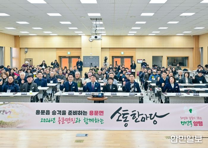 이어 2026년 용문읍 도약을 위한 향후 추진 계획으로 △경기 광주~용문 간 일반철도 신설 △KTX 용문역 정차 추진 및 종합훈련장 폐쇄 △용문산 관광지 활성화 용역 추진 등 교통 인프라 확충과 동부권 관광지 개발을 중심으로 한 핵심 정책 방향이 제시됐다.