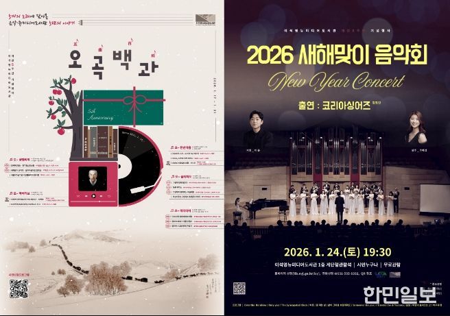 대표 프로그램으로는 오는 24일 오후 7시 30분, 도서관 1층 계단형 관람석에서 열리는 ‘2026 새해맞이 음악회’가 있다. 음악회에는 코리아싱어즈 합창단, 오카리나 연주자 김욱, 클라리네티스트 김예원 등이 출연해 새해의 희망을 전하는 공연을 선보인다.