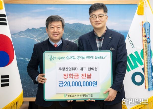 한민일보 서울포커스 임경복 기자 | 지난 20일 화요일 오전 9시, 울릉군청을 방문한 우정산업(주)는 (재)울릉군인재육성재단(이사장 남한권)에 장학금 2,000만 원을 기탁했다.
