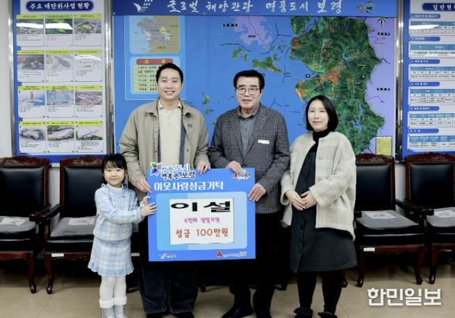 한민일보 서울포커스 임경복 기자 | 보령시는 지난 20일 시장실에서 이지원 씨와 배우자 고가슬 씨, 그리고 딸 이설 양이 참석한 가운데 ‘희망 나눔 캠페인’ 성금 전달식을 가졌다. 이날 이 씨 가족은 이설 양의 생일을 기념해 정성껏 마련한 성금 100만 원을 보령시에 기탁했다.