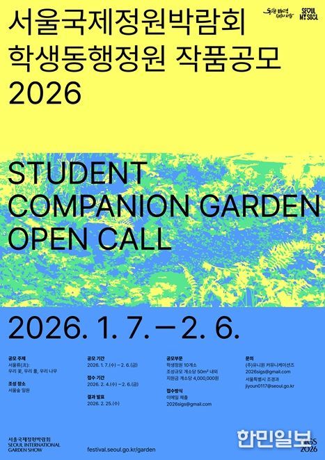 서울시는 창의적인 정원 디자인 발굴과 정원문화 확산을 위해 7일부터 2월 6일까지 '2026 서울국제정원박람회' 학생동행정원 및 시민동행정원 작품공모를 진행한다고 밝혔다.
