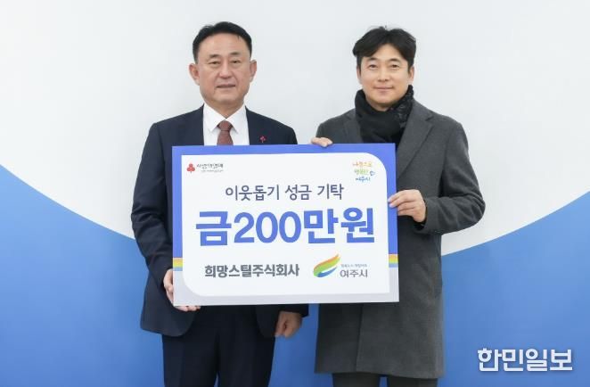 한민일보 서울포커스 전희주 기자 | 지난 19일 여주시 삼교동 소재 희망스틸주식회사 김영기 대표는 여주시를 방문하여 이웃돕기 성금 200만원을 기탁했다.