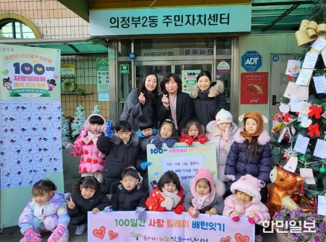 한민일보 서울포커스 심기옥 기자 | 의정부시 의정부2동주민센터는 1월 20일 롯데캐슬 빛솔 어린이집이 ‘100일간 사랑릴레이 배턴 잇기’에 동참해 취약계층을 위한 성금 48만8천710원을 전달했다고 밝혔다.